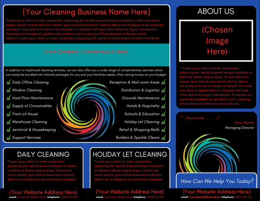 "Unlock the full potential of your cleaning business or stall with our fully customizable templates! As a valued client, you'll have complete control over the design and content of your documents, including forms and handbooks. With our library of templates, you can easily edit text, adjust formatting, resize elements, and swap out images to create a unique look that perfectly reflects your brand. Our customisable templates are the perfect solution for your cleaning business or stall."